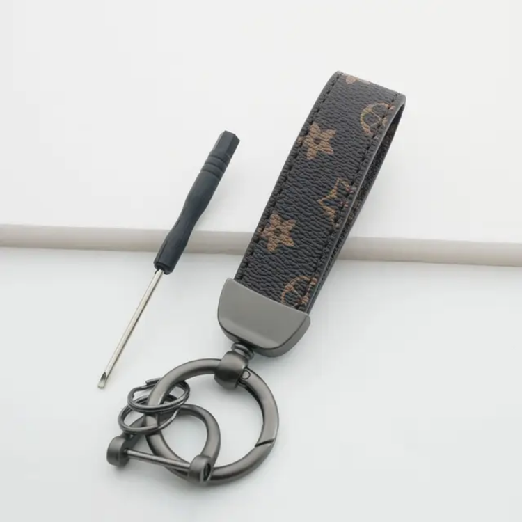 دسته کلید و جاسوئیچی چرمی ، با کیفیت و یراق عالی، همراه با پیچگوشتی برای تعویض چرم ،
