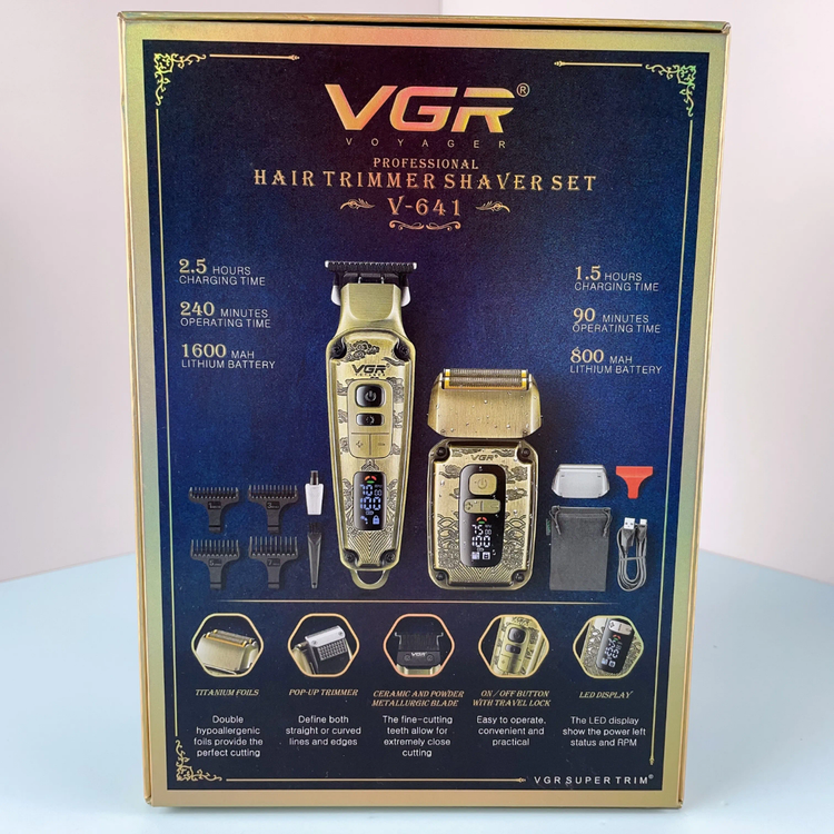 این مجموعه شامل دو دستگاه اصلاح کننده است: یک تریمر با تیغههای سرامیکی با دقت بالا و یک ماشین اصلاح فویلی با تیغههای تیتانیومی برای اصلاح نرم و راحت. هر دو دستگاه با بدنهای فلزی و مستحکم، طراحی شدهاند تا در برابر استفادههای مکرر مقاومت نشان دهند.
