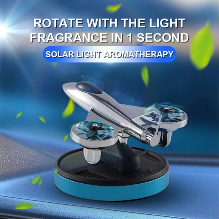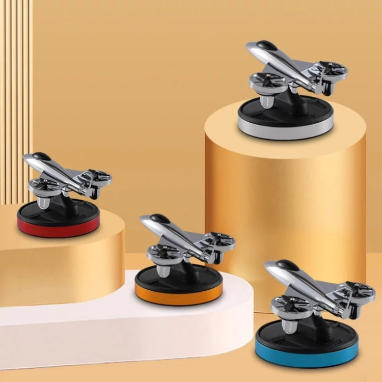 خوشبو کننده خورشیدی خودرو چرخش پره های هواپیما با تابش نور خورشید بدون نیاز به باطری لوازم همراه: بطری خوشبوکننده (تنوع رنگ مربوط به نوار پایین کالاست)