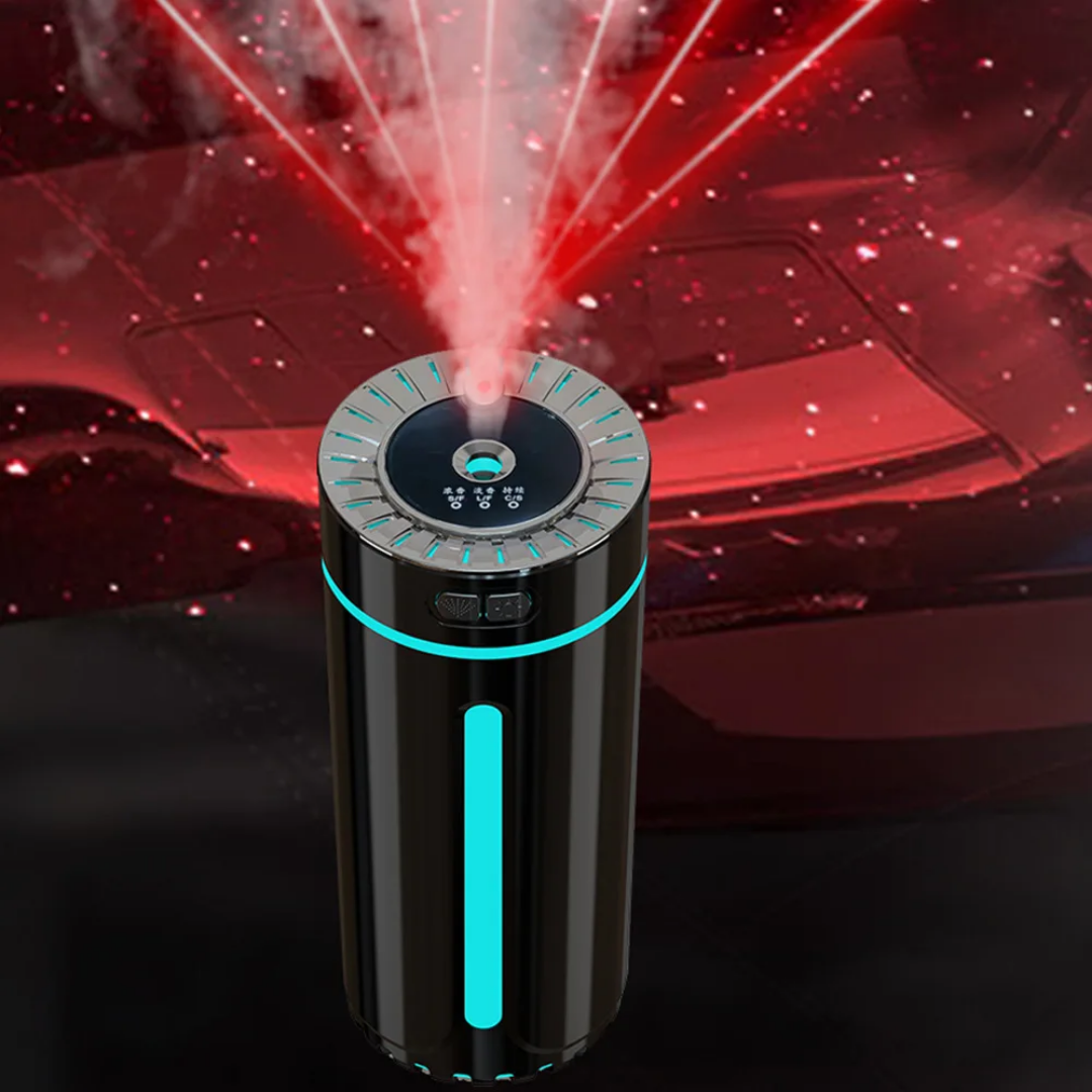 دستگاه رطوبتساز لیوانی با قابلیت شارژ شدن، و لیزر آسمان پر ستاره جلوه نوری زیبایی را به سقف ماشین می بخشد،