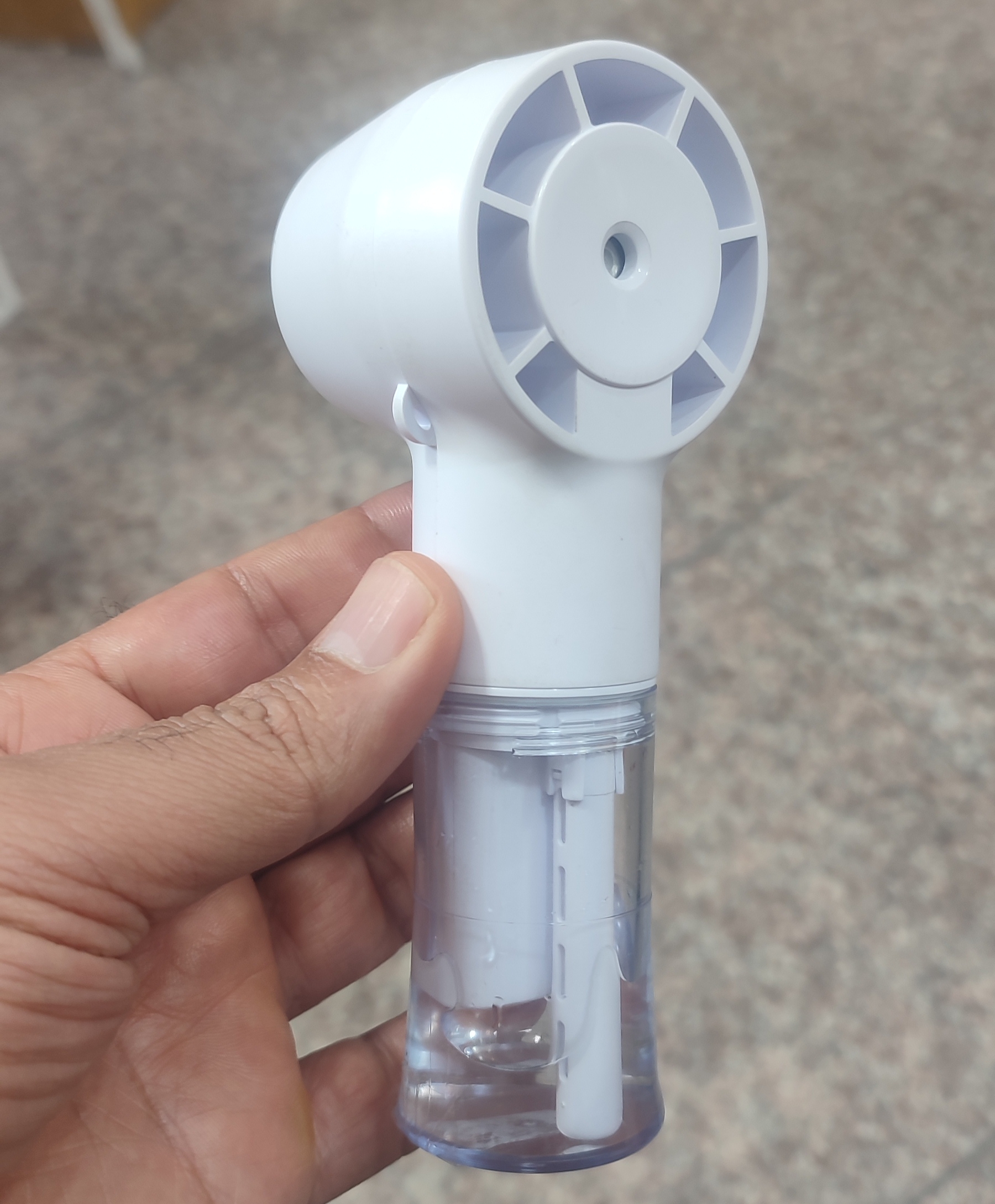 ۳) بعد از اضافه کردن آب به مخزن دستگاه را به صورت افقی نگه دارید تا پد پنبهای به اندازه کافی مرطوب شود