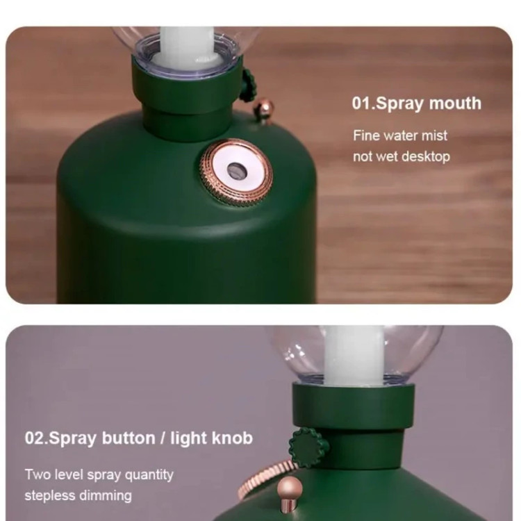 چراغ خواب مدل فانوس بخور سرد رطوبت ساز شارژی ظرفیت مخزن : 280 میلی لیتر میزان اسپری: 25-40 میلی لیتر در ساعت ظرفیت باتری: 1200 mAh توان: 1/5 w دارای ولووم تنظیم نور